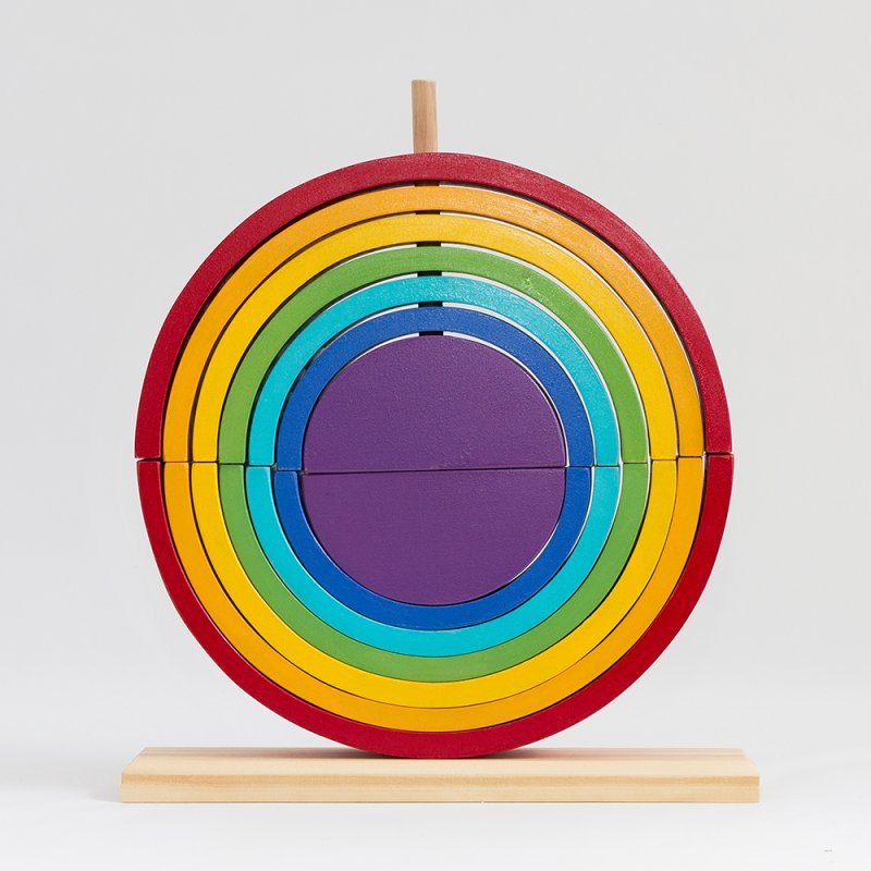 Su madera, imperfecta y natural, les da información sensorial muy valiosa. Sus piezas les ayudan a diferenciar formas y colores. Manipulándolo ganan destreza y coordinación. A través de él van comprendiendo conceptos complejos como el equilibrio, la simetría y la resistencia. Les abre la puerta de par en par al juego simbólico, a construir escenarios e imitar situaciones de la vida real.