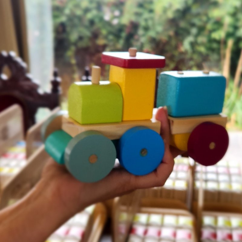 Rodado didactico de bloques desarmable, juego de ensarte, rompecabezas y arrastre.